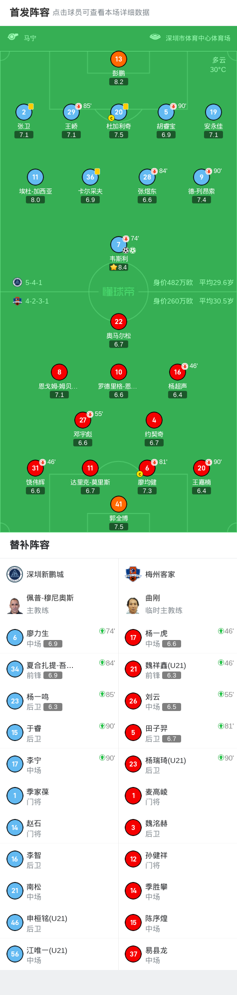 新鹏城2-0梅州,韦斯利双响,杨超声进球被吹